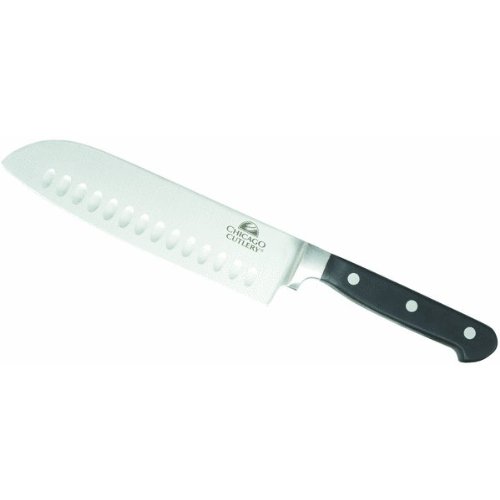 Chicago Cutlery Centurion 7-Inch Santoku Knife has high-carbon stainless steel blades with our exclusive Taper Grind edge that provides optimum sharpness and makes it easier to keep edges sharp over time. Full-tang blades coupled with a heavy duty forged bolster provide balance and strength. The black polymer handles give Centurion a classic look while the triple riveted construction provide safety.Item Specifications